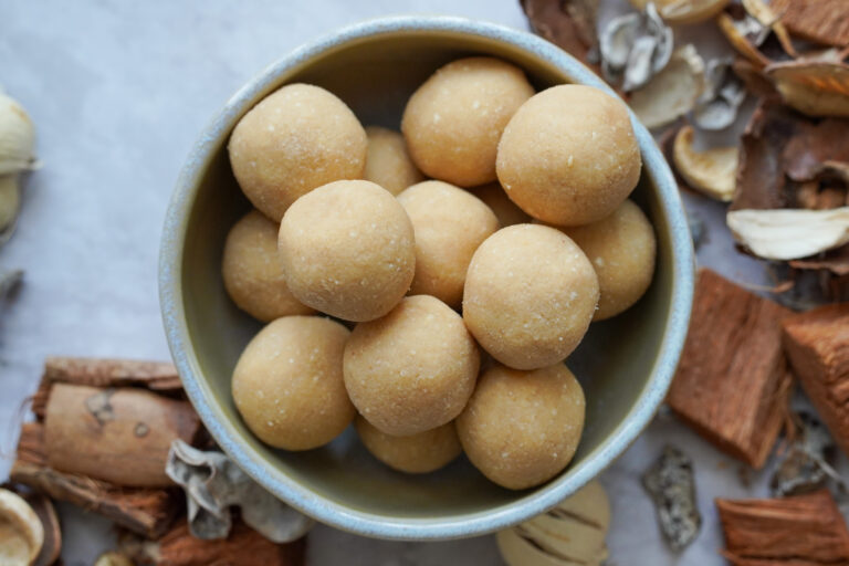 Много обичам да правя сурови бонбони – нужни са малко съставки, не изискват печене, и обикновено са готови за 20–30 минути. Напоследък обаче ми се иска нещо по-малко сладко, затова започнах да избягвам фурмите. Така се роди тази рецепта – моята версия на здравословни трюфелови бонбони.